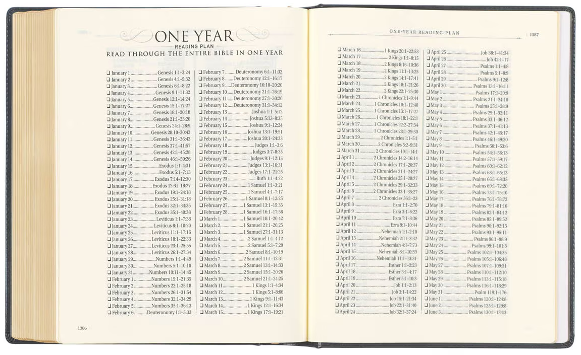 This Bible also offers additional study helps to support your journey. It includes two satin ribbon markers for easy navigation, a thematic Scripture verse finder to locate specific passages, a concordance to aid in finding relevant topics, a one-year Bible reading plan for structured reading, and 8 full-color maps for geographical reference.