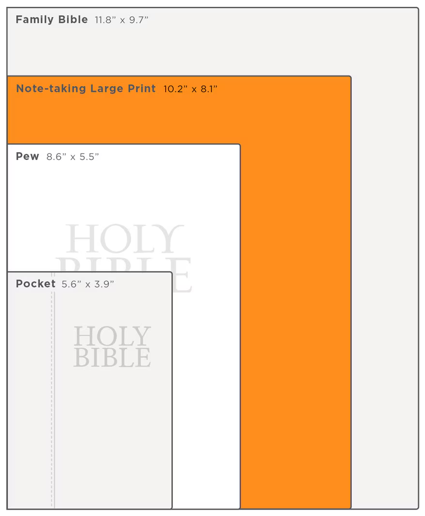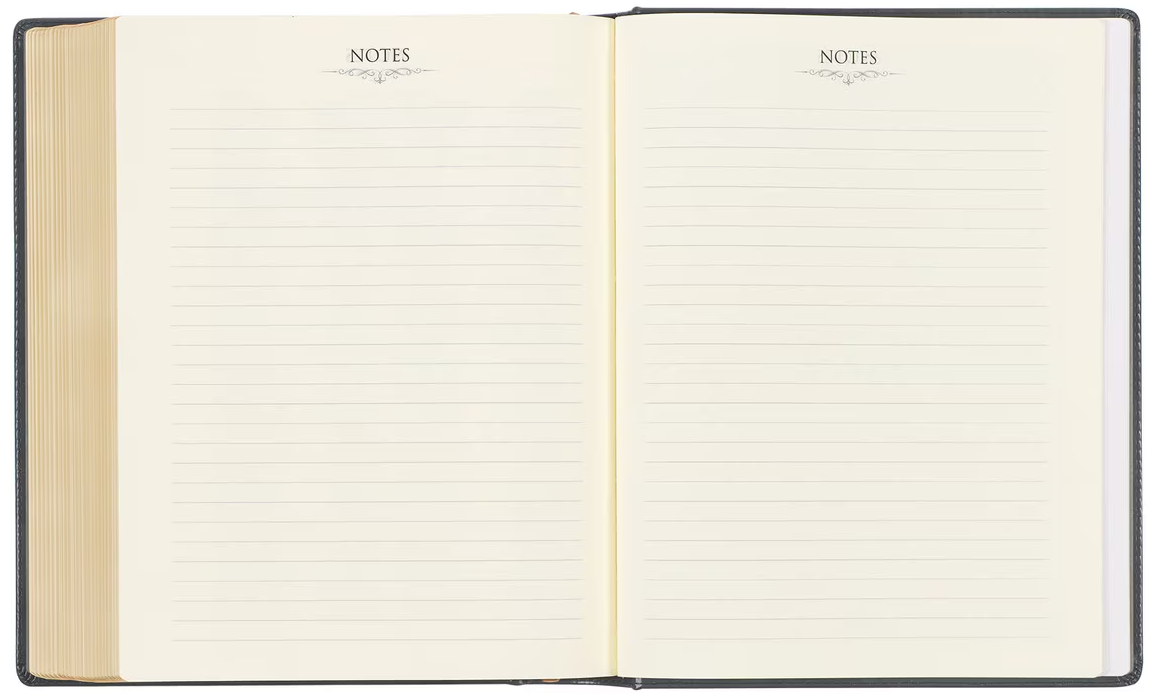 Immerse yourself in the Word without straining your eyes with the Iron Gray Faux Leather Hardcover Large Print King James Version Note-taking Bible. Its spacious design features 2.5-inch wide margins with 1.8-inch lines, providing ample room to make personal notes and annotations while reading. The large print 10.8-point type ensures clear and comfortable reading that will enhance your study experience.